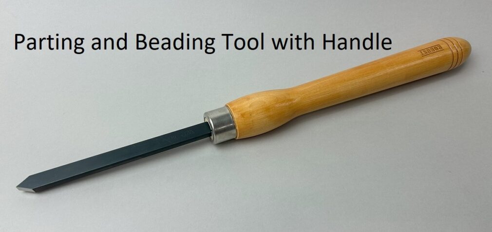 Nominal size of the blade is 1/4” wide, 1/2” tall, but tends to run slightly larger. Hollow ground on an 8″ wheel with a 60 degree included angle. Great for parting and turning small details, like beads. 6.5” usable length. Maple handle with stainless steel ferule is 12”. Also available unhandled.